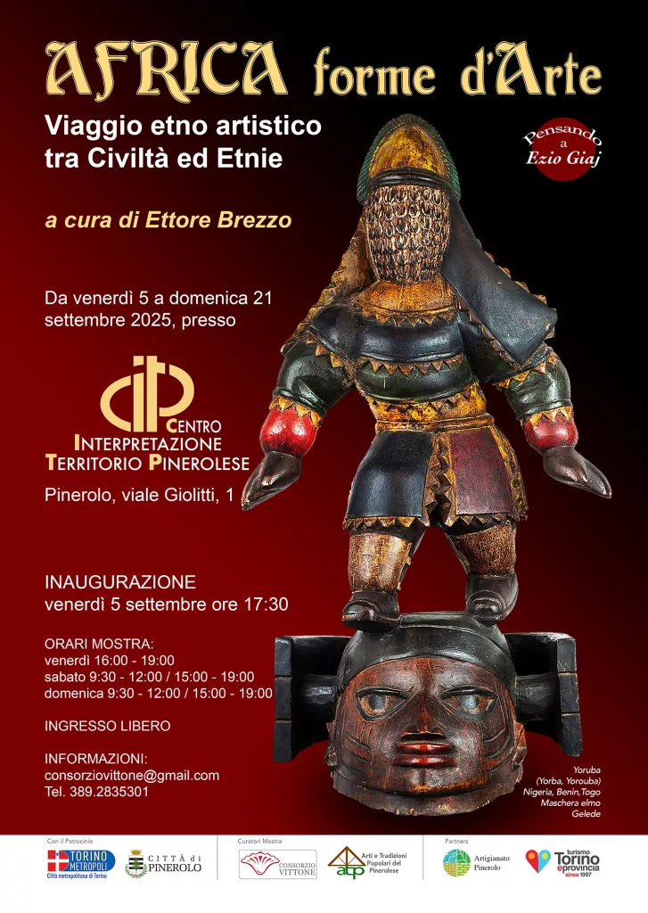 L’arte africana arriva nel comune piemontese di Pinerolo (TO): dal 5 al 22 settembre, presso Il Centro Interpretazione Territorio Pinerolese (Viale Giolitti, 1) non perdetevi la mostra “Africa forme d’Arte. Viaggio etno artistico tra Civiltà ed Etnie”, a cura di Ettore Brezzo.