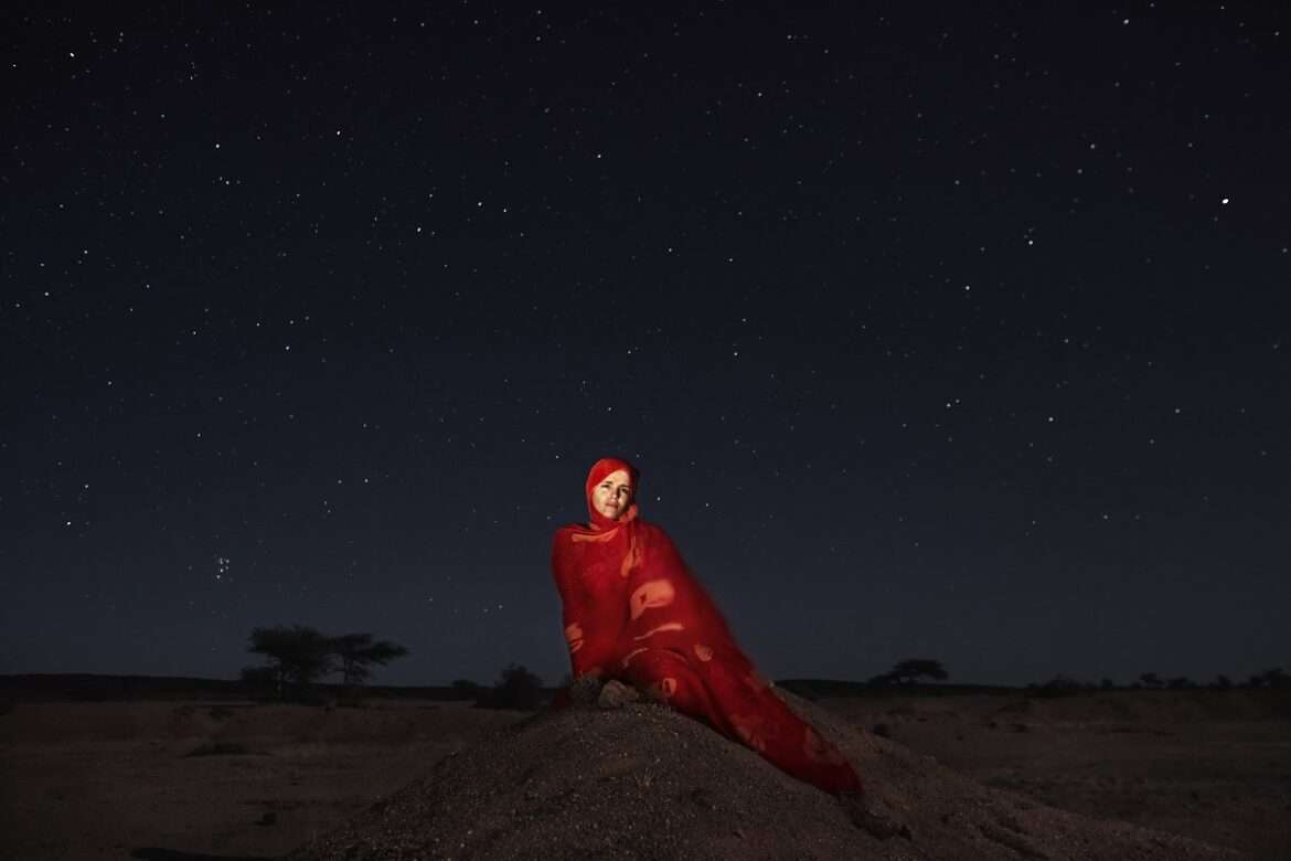 Minatu Lanabas Suidat, giornalista, tra le dune di Tifariti, nel Sahara Occidentale controllato dal Fronte Polisario. «Con il mio lavoro cerco di rompere il silenzio che avvolge la nostra drammatica situazione», racconta. «Da decenni siamo senza terra e dipendiamo dagli aiuti internazionali. Chiediamo solo di poter vivere in pace nella nostra patria».