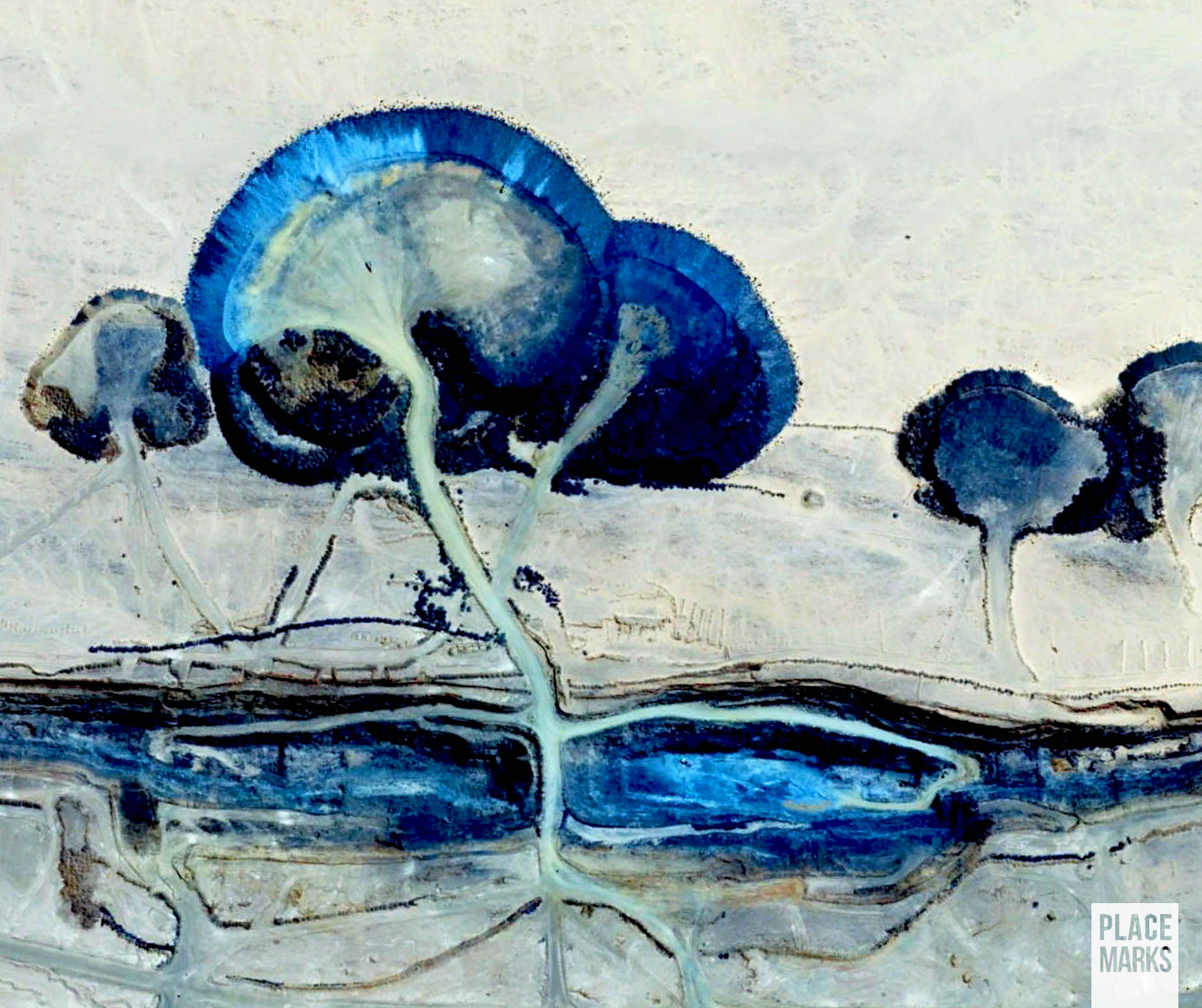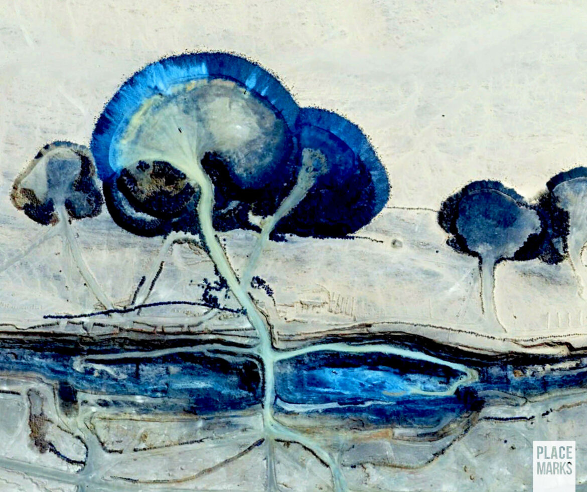 Nella miniera d’oro di Amesmessa, al confine tra Algeria e Mali, il contrasto con il bianco della sabbia rende ancora più intenso il colore blu dei materiali di risulta. Nonostante l’aumento della domanda dell’oro la posizione remota della miniera e l’instabilità dell’area rendono la produzione discontinua e non sempre conveniente.