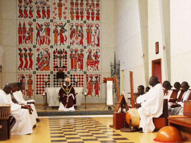 Nell’abbazia vivono una quarantina di monaci di otto nazionalità diverse, provenienti soprattutto dall’Africa Occidentale. Due sono francesi. L’ottantasettenne Domenique Catta è l’unico tra i fondatori del monastero ancora in vita. «Fummo i primi a introdurre l’utilizzo della kora (strumento a corde tipico dell’Africa Occidentale, Ndr) nella liturgia cattolica», ricorda con orgoglio fra’ Dominique nella sua tunica grigia. Tutto iniziò quando i suoi superiori lo inviarono in Senegal per studiare la musica locale. «Mi spedirono nei villaggi con un registratore… E rimasi letteralmente incantato dai canti tradizionali». Fra’ Domenique decise di inserire alcuni canti nella liturgia ecclesiastica. «Adattai le parole di alcuni salmi traducendoli in wolof. Poi cominciai a studiare la kora. Ero innamorato dal suo dolce suono, a metà tra quello di un’arpa e di un liuto. Invitai al monastero un cantastorie mandinga con la sua kora: gli chiesi di insegnarmi a suonare lo strumento».