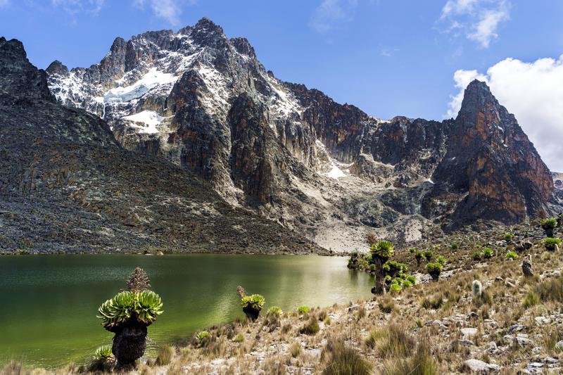 Il Monte Kenya è la seconda vetta d’Africa per altezza (5199 metri) dopo il Kilimangiaro (5895). La cima è nata da un vulcano le cui ultime eruzioni, milioni di anni fa, hanno creato un paesaggio stupendo, colonizzato da curiosi animali e specie vegetali. Fu scalato nel 1899 da Halford John Mackinder (le precedenti salite degli abitanti locali non sono registrate).