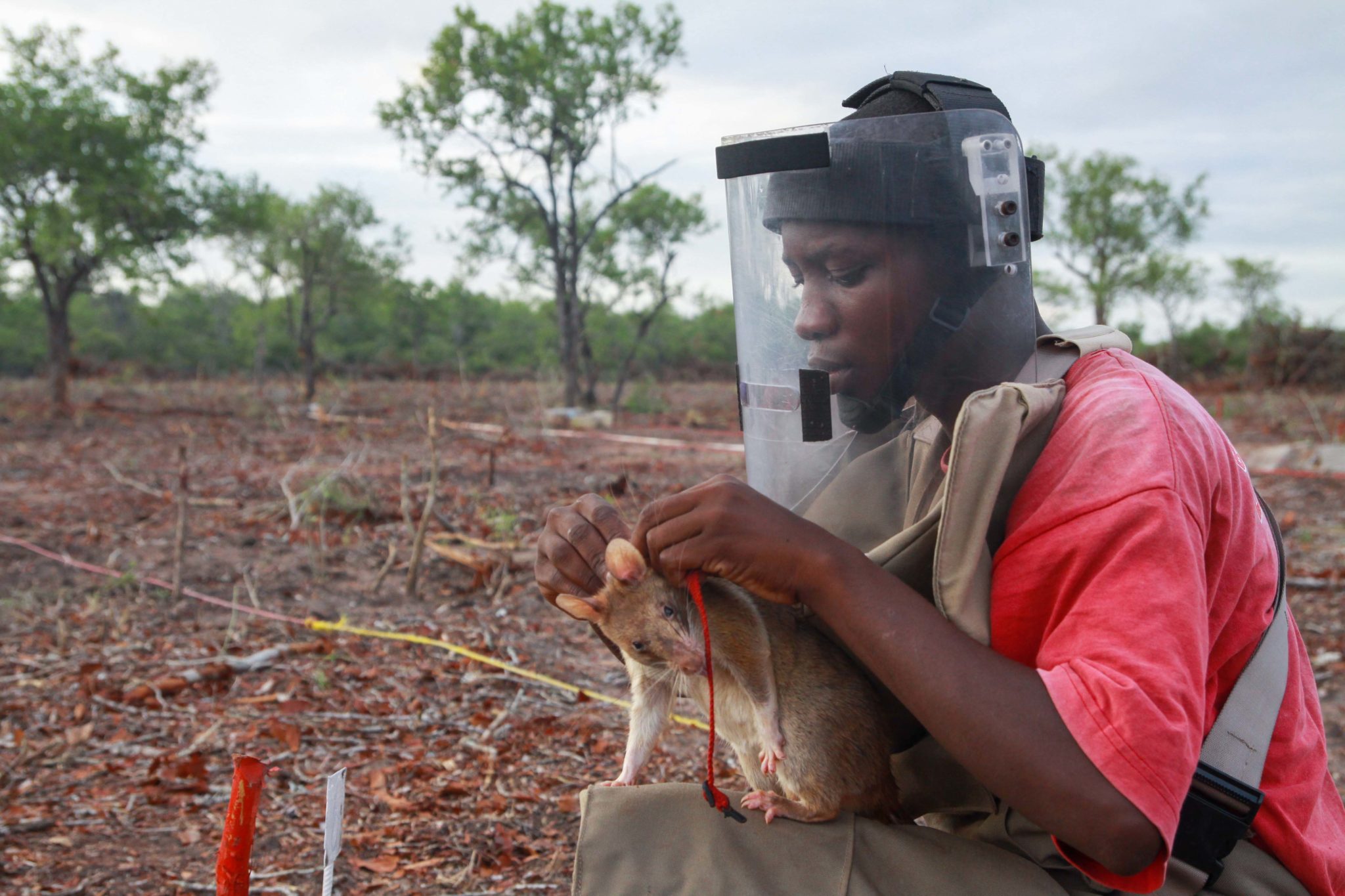 Un addestratore di topi antimine in Mozambico. L’organizzazione belga Apopo – specializzata nella bonifica dei terreni minati – ha ingaggiato decine di ratti africani (Cricetomys gambianus) nella delicata ricerca degli ordigni disseminati sotto terra durante i sedici anni di guerra civile. Questi animali riescono a perlustrare circa 100 metri quadrati in mezz’ora, senza correre alcun pericolo: sono troppo leggeri per far detonare le mine. Dal 2006 decine di topi hanno lavorato sui campi minati, aiutando a trovare oltre 13.000 mine e risanando oltre 11 milioni di metri quadrati di territorio. «In Mozambico i ratti hanno contribuito a disinnescare più di 13 mila ordigni», racconta Caterina Saccardo, vicentina di 40 anni che dal 2016 lavora a Morogoro, in Tanzania, dove ha sede Apopo. «Ho visto coi miei occhi cosa significa comunicare agli abitanti di un villaggio dell’Angola che possono smettere di fare giocare i bambini nel pollaio, unico posto sicuro prima della bonifica, e mandarli a correre nei campi dove le mine non ci sono più, grazie ai nostri piccoli eroi».
