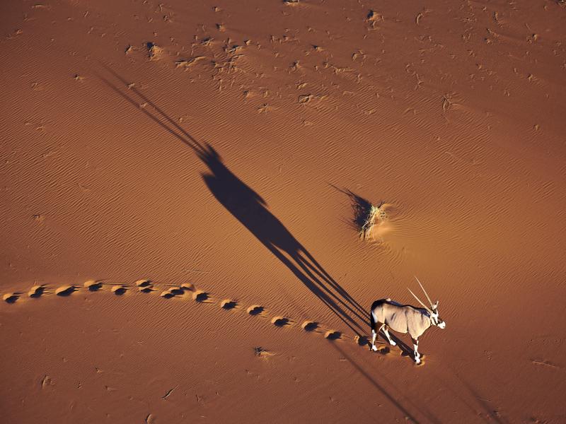 Un orice (Oryx gazella) cammina sulla sabbia del Namib, che si estende per 2000 chilometri lungo la costa della Namibia. – Foto di Eric Le Go
