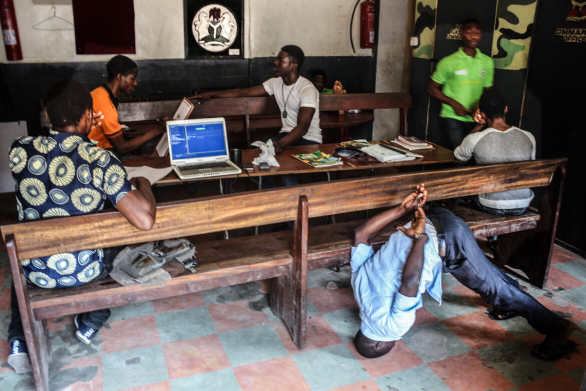 Allievi dello Yaba College Of Technology in una quotidianità scandita da studio, esercitazioni e momenti di relax. – Foto di Fawaz Oyedeji