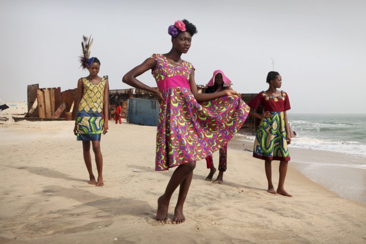 Nigeria: modelle indossano abiti creati dallo stilista nigeriano Bimpe Adebambo durante un servizio fotografico su una spiaggia di Lagos.