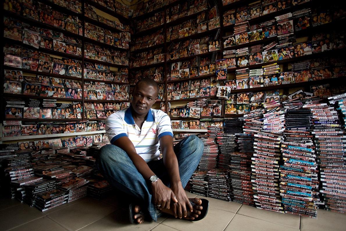 Venditore di dvd di film nigeriani a Lagos – Foto di Guy Calaf