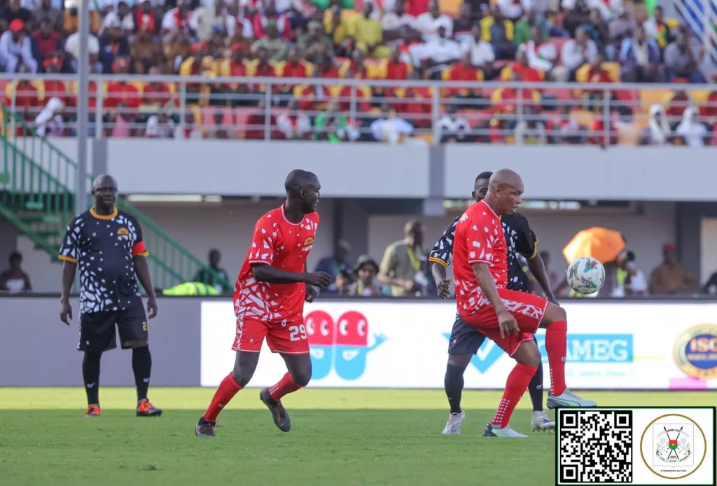 Giocata sotto lo sguardo di Traoré e del primo ministro Jean Emmanuel Oedraogo, oltre che di mezzo governo, la partita (due tempi da 20 minuti ciascuno) ha visto queste vecchie glorie del calcio sfidare una squadra delle Forze di difesa e sicurezza del Burkina Faso, match conclusosi in pareggio sull’1 a 1 (gol di Eto’o). Ancora nel secondo tempo, le Forze di difesa e sicurezza stavano perdendo ed hanno ottenuto un rigore sul finale ma l’hanno fallito, pareggiando però al novantesimo.