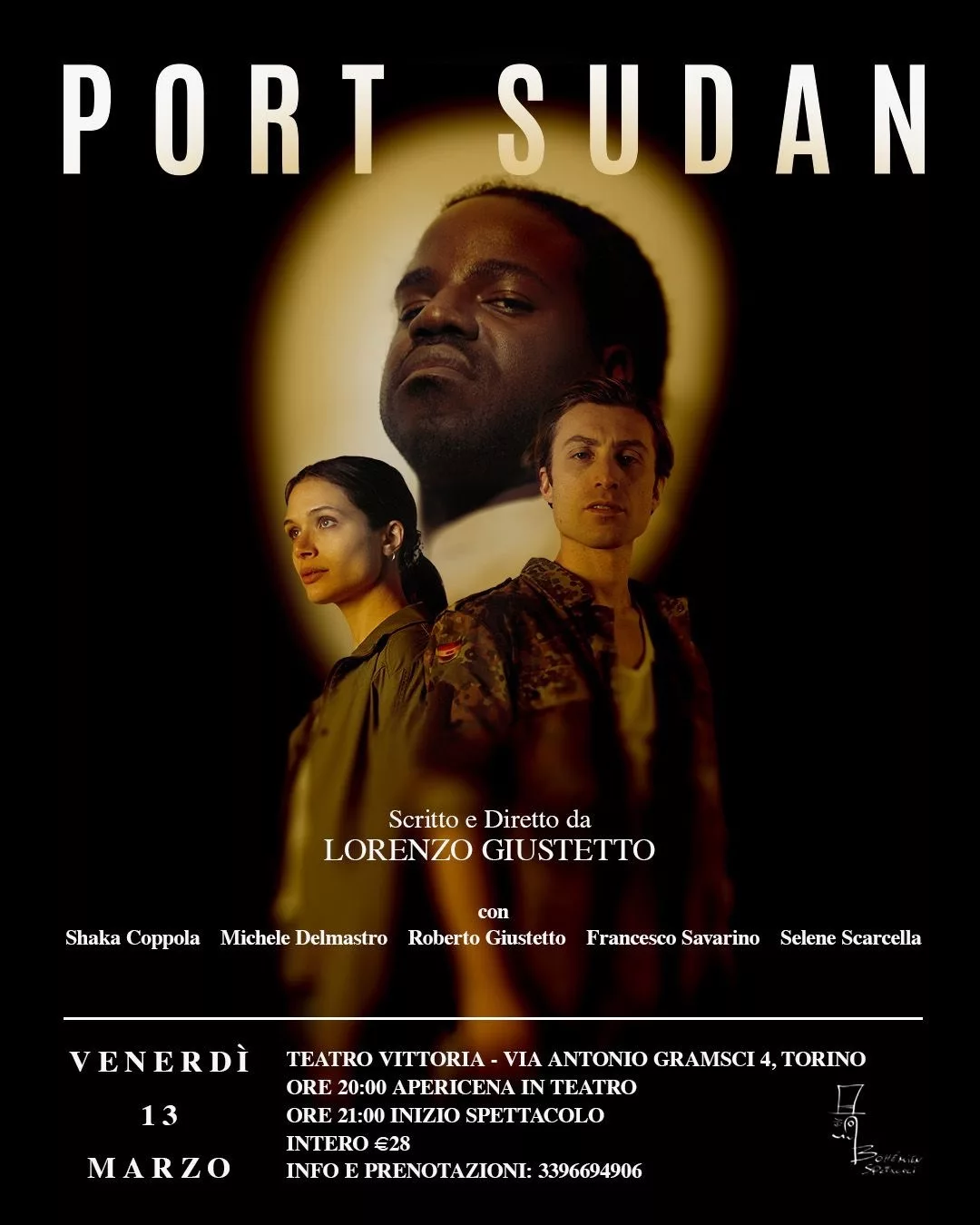 Il 13 marzo alle ore 21:00, il Teatro Vittoria di Torino ospita “Port Sudan“, nuovo spettacolo teatrale della compagnia Bohémien Spettacoli, scritto e diretto da AL o, al suo debutto alla regia. Un’opera intensa e coinvolgente che unisce il respiro dell’avventura a una lucida e necessaria denuncia del genocidio che sta colpendo la popolazione sudanese.