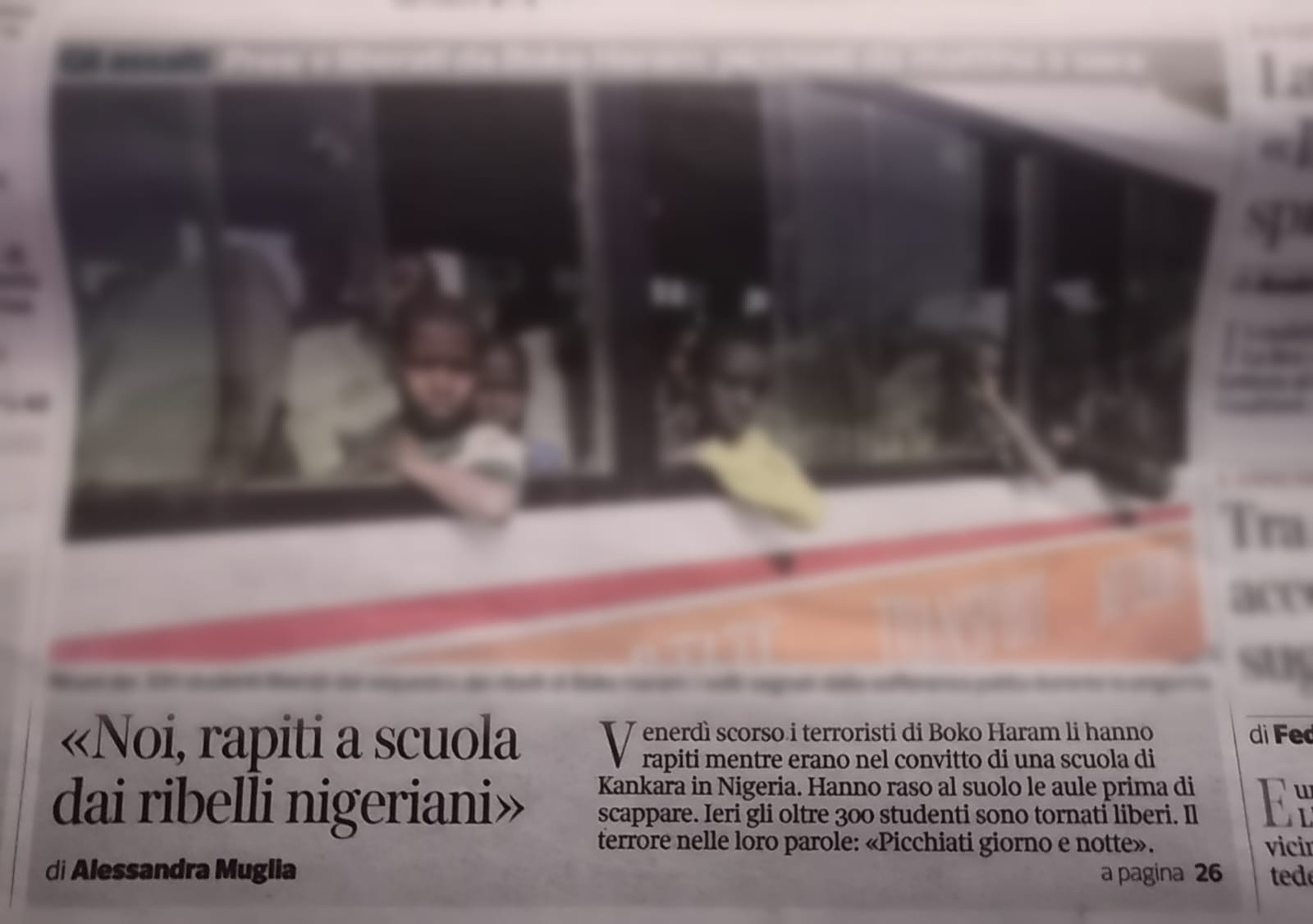 Oggi il Corriere della Sera ha pubblicato in prima pagina la notizia della liberazione dei 300 bambini nigeriani liberati dopo il rapimento di massa avvenuto una settimana fa in una scuola di Kankara. Una bella notizia.