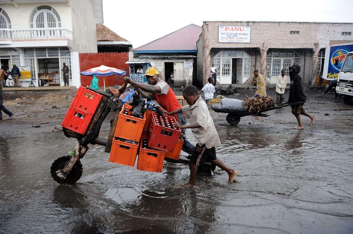 Casse di birra e Coca-Cola viaggiano sui chukudu. – Foto di Zuma Press/Alamy
