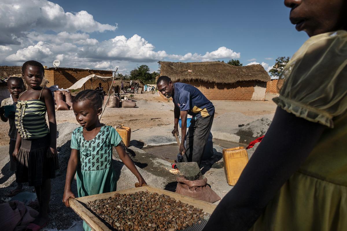 La lavorazione del minerale coinvolge anche donne e bambini. Una famiglia di minatori artigianali riesce a raccogliere circa 100 chili di cobalto al mese con un guadagno medio di 150 dollari. – Foto di Luca Catalano Gonzaga