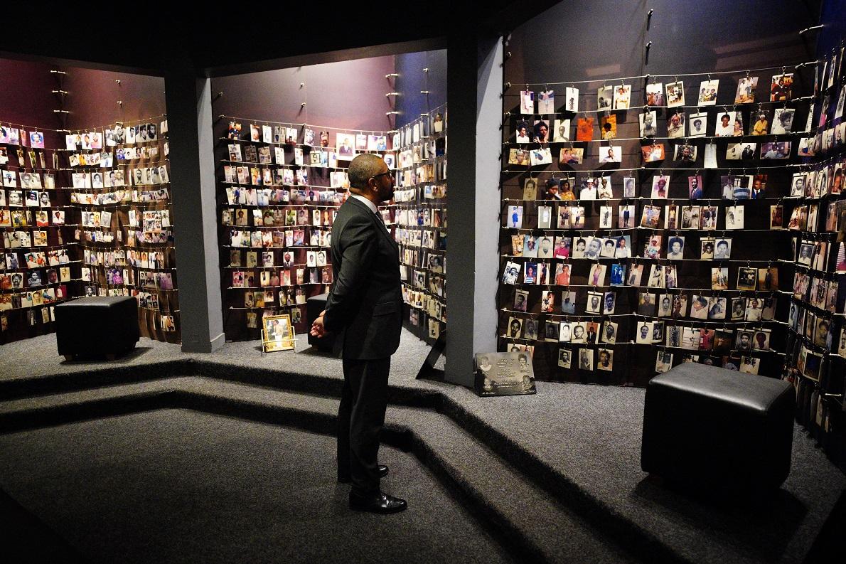 Il ministro dell’Interno britannico James Cleverly visita il Memoriale del Genocidio di Kigali. È il 5 dicembre 2023 e il ministro è nella capitale ruandese per siglare un nuovo, un controverso piano di trasferimento di migranti in Ruanda. – Foto di Ben Birchall/ Pool/ Afp