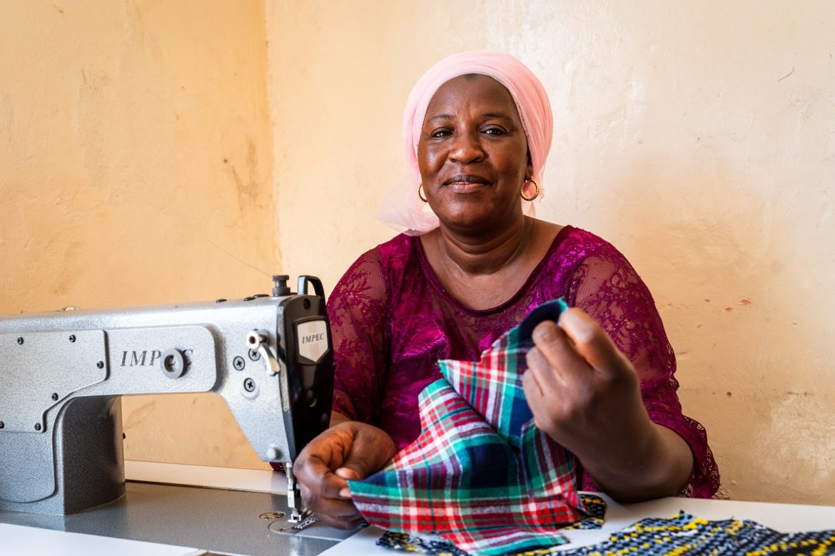 Una donna dell’Association des Mamans al lavoro per la produzione di assorbenti riutilizzabili. – Foto di Stefano Barbieri