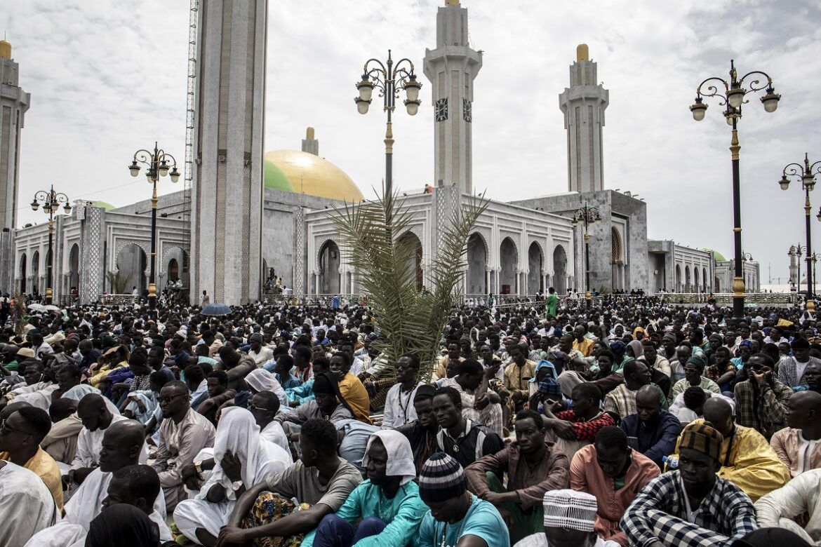 Fedeli musulmani della confraternita dei Muridi davanti alla Grande Moschea di Toubaò. – Foto di John Wessels / Afp