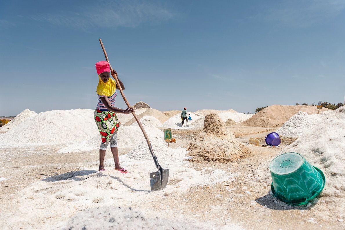 Le fasi di essiccazione al sole del sale estratto dal Lago Retba, le cui rive per decenni sono state il punto di arrivo del celebre rally Parigi Dakar. – Foto di Christian Bobst