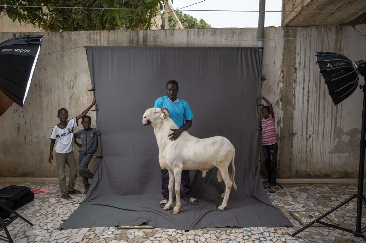 Il set fotografico usato per ritrarre le pecore più belle di Dakar, coi loro padroni. – Foto di Sylvain Cherkaoui / Panos Pictures