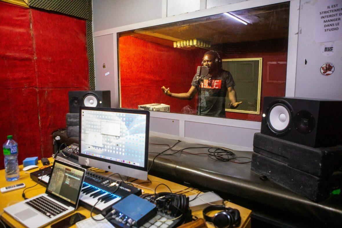 Mustaf, 40 anni, rapper e attivista di Africulturban, nello studio di registrazione – Foto di Simone Bergamaschi