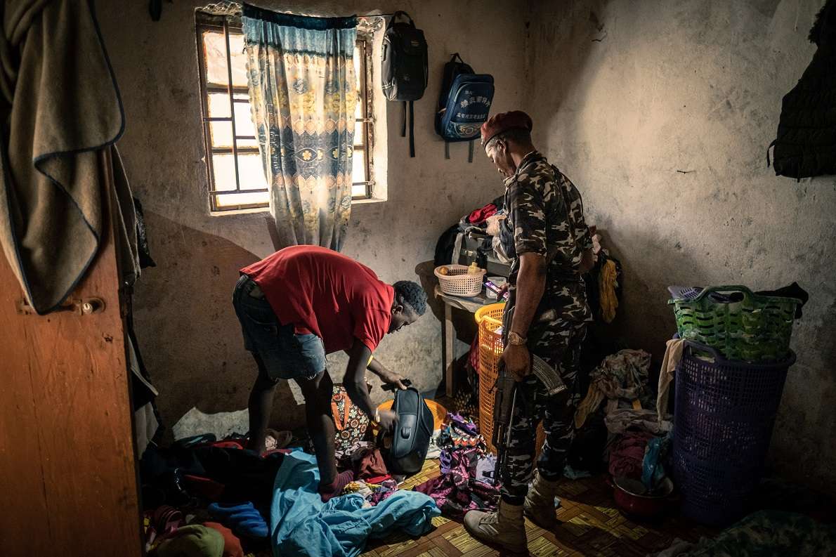 Un soldato perquisisce la casa di un presunto spacciatore di kush. – Foto di Tommy Trenchard / Panos Pictures