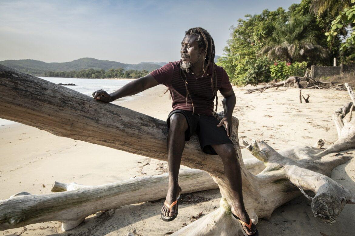 Tito Gbandewa, un residente della spiaggia di Black Johnson, a sud di Freetown. Questo territorio di straordinario valore naturalistico rischia di essere sconvolto da una grande opera cinese: un porto industriale. – Foto di Simon Townsley / Panos Pictures