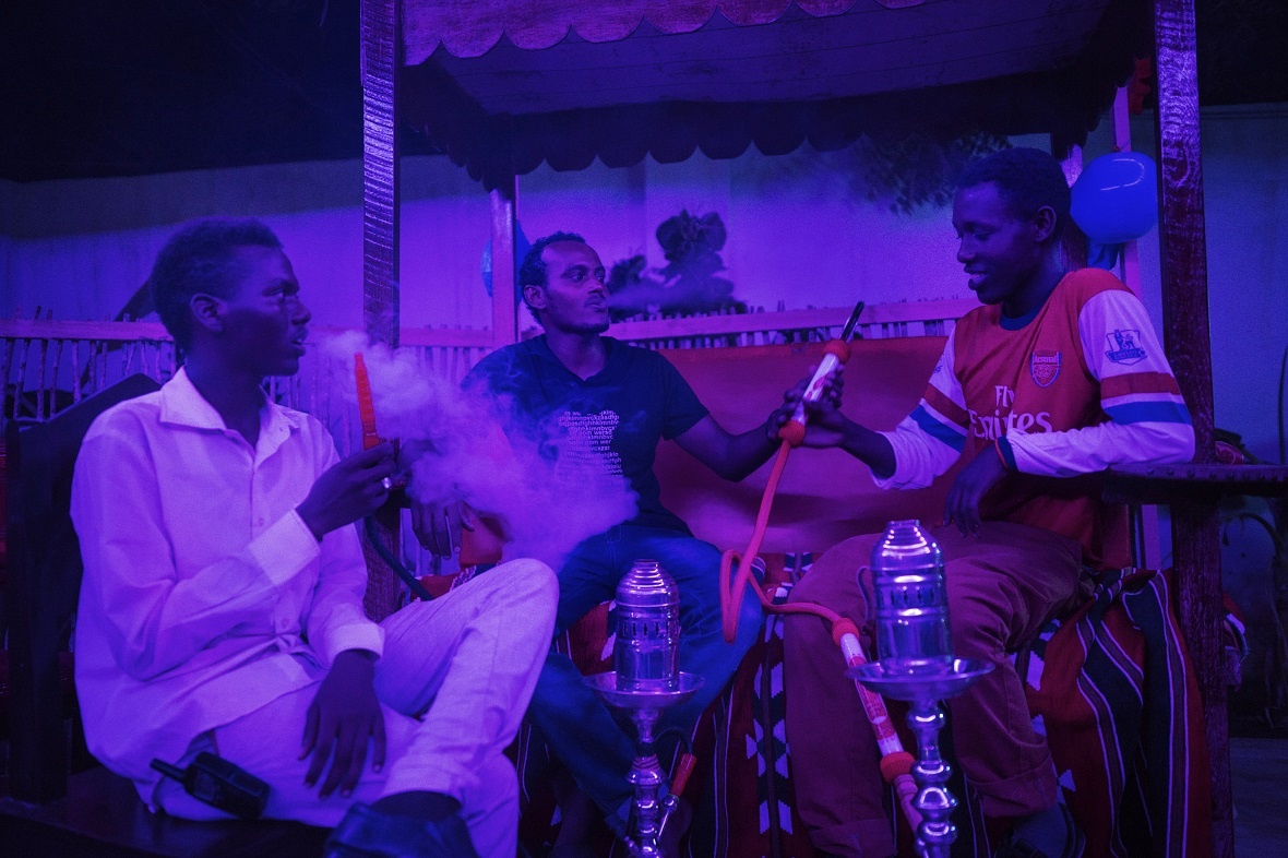 Fumatori di narghilè al Posh Treats (letteralmente, “Piaceri eleganti”), locale notturno di Mogadiscio inaugurato nel 2016 per volere di una coraggiosa imprenditrice. Qui si può ascoltare musica, fumare e abbandonarsi a danze sensuali: un’eresia per la rigida morale dei jihadisti. – Foto di Marco Gualazzini