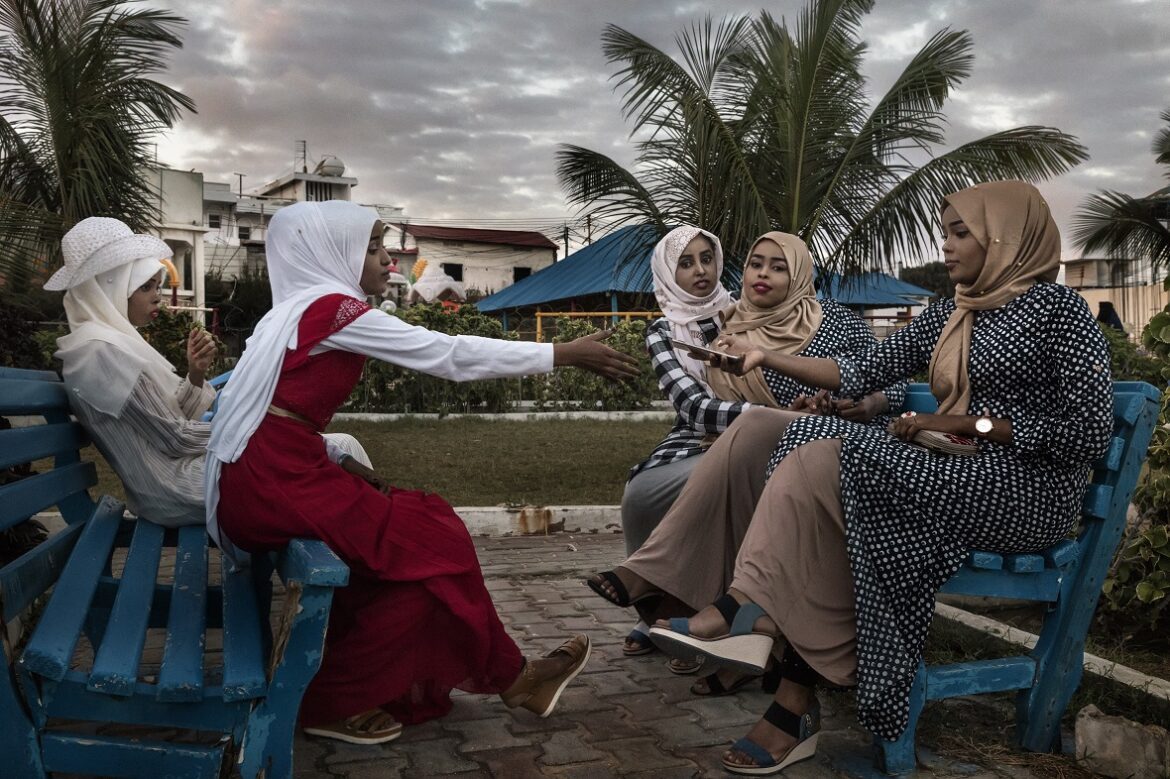 Ragazze di Mogadiscio nel parco di Beerta Nabadda, luogo di ritrovo per i giovani della città ribattezzato “Peace Garden”, “Giardino di Pace”. – Foto di Marco Gualazzini