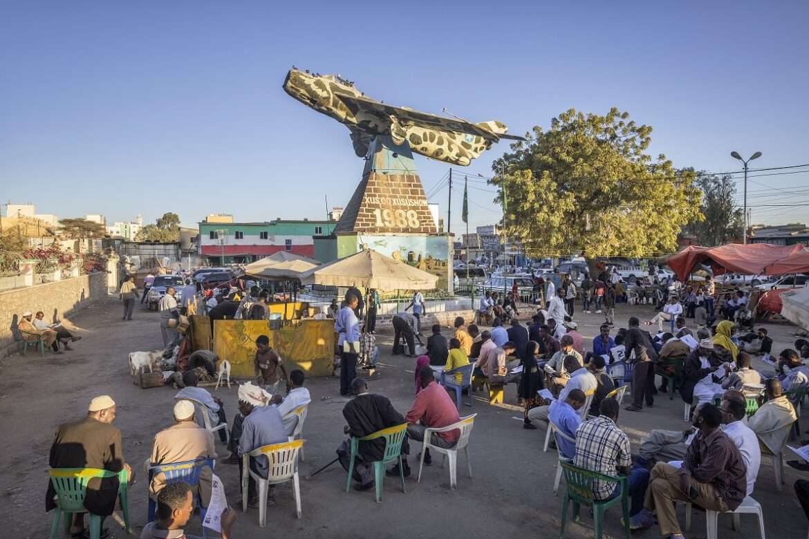 Un caccia militare – che rievoca il bombardamento di Hargeisa ordinato nel 1988 dal dittatore somalo Siad Barre nel tentativo, naufragato, di sconfiggere gli indipendentisti – sovrasta i cittadini che sorseggiano il tè in una piazza di quella che è diventata de facto la capitale amministrativa dell’autoproclamato Stato indipendente del Somaliland