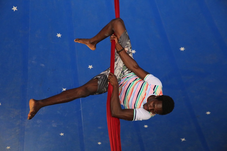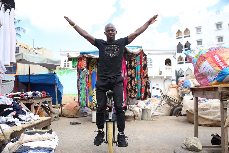 Il ventenne Mouhamadou Camara, detto “il Capitano”, è entrato nel Sencirk tre anni fa. È bravissimo a stare in equilibrio con il monociclo. «Ho sempre sognato di fare circo – racconta –. Da piccolo vedevo in tivù i bianchi che si esibivano con spettacoli mozzafiato. Io mi allenavo a fare acrobazie in spiaggia, e un giorno un amico mi ha parlato della compagnia».
