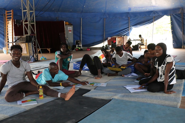 Tra una prova e un’altra capita di vedere i giovani circensi seduti a seguire una lezione di educazione alla cittadinanza o dibattere su una questione di attualità, magari destinata a ispirare uno spettacolo. L’ultimo show che la compagnia sta portando in giro, per esempio, s’intitola Io dove sto andando? Metà circo, metà teatro. Il tema è l’immigrazione. Ispirato alla vita reale di un gruppo di acrobati guineani. «Abbiamo lasciato il nostro Paese in cerca di fortuna – dice Wahabou Damba –. Quando siamo giunti a Dakar abbiamo scoperto l’esistenza del Sencirk e abbiamo deciso di fermarci. Se non ci fosse stato questo circo avremmo forse tentato l’avventura verso l’Europa. E chissà come saremmo finiti».