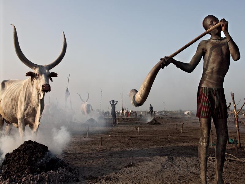 I Dinka migrano con le loro mandrie al ritmo delle piogge e delle esondazioni del Nilo Bianco. Questa popolazione vive infatti in simbiosi con le proprie vacche dalle lunghe corna, da cui trae latte e sangue. Da secoli si spostano in cerca di pascoli attraversando terre che trasudano petrolio e fanno gola a tanti.