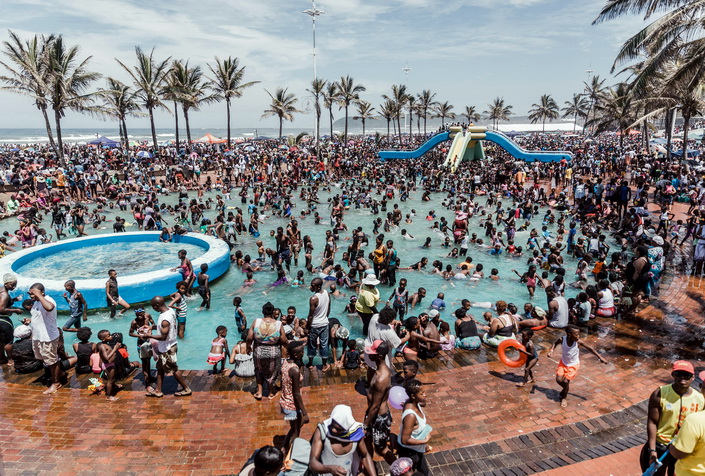Migliaia di sudafricani si sono riversati sulle spiagge di Durban per festeggiare il primo giorno dell’anno. Il Sudafrica (assieme alla Nigeria) rimane l’economia più ricca e avanzata del continente, ma presenta forti contrasti, sperequazioni sociali e razziali (i neri guadagnano in media tre volte meno dei bianchi) e un tasso di disoccupazione del