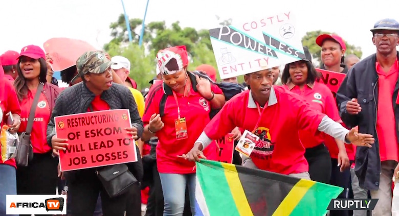 Migliaia di persone appartenenti alla più grande federazione sindacale del Sudafrica sono scesi nelle strade di Johannesburg mercoledì 13 febbraio 2019 per protestare contro la perdita di posti di lavoro in tutto il Paese.