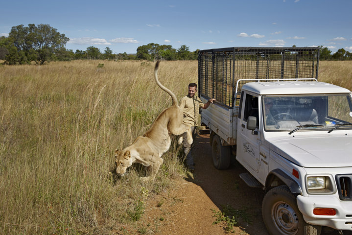 Lo zoologo sudafricano Kevin Richardson, qui fotografato con un stupendo esemplare di leone (Panthera leo) nella riserva naturale di Welgedach, a un’ora di macchina da Johannesburg. Richardson è conosciuto come “l’uomo che sussurra ai leoni”, per via della sua straordinaria capacità di instaurare un rapporto speciale con questi animali, temuti e ammirati per la loro fierezza ma sempre più a rischio di estinzione.