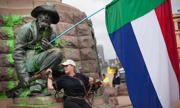 A Pretoria, la cantante sudafricana Sunette Bridges si è incatenata ieri alla statua dell’ex leader boero Paul Kruger, conosciuto come il padre della nazione afrikaner, per protestare contro chi intenderebbe rimuoverla (come è stato fatto per la statua di Cecil Rhodes all’Università di Città del Capo). Domenica, la statua è stata imbrattata di vernice verde dai membri della Lega giovanile dell’Anc e dei Freedom Fighters economico, in seguito alla campagna #Rhodesmustfall.