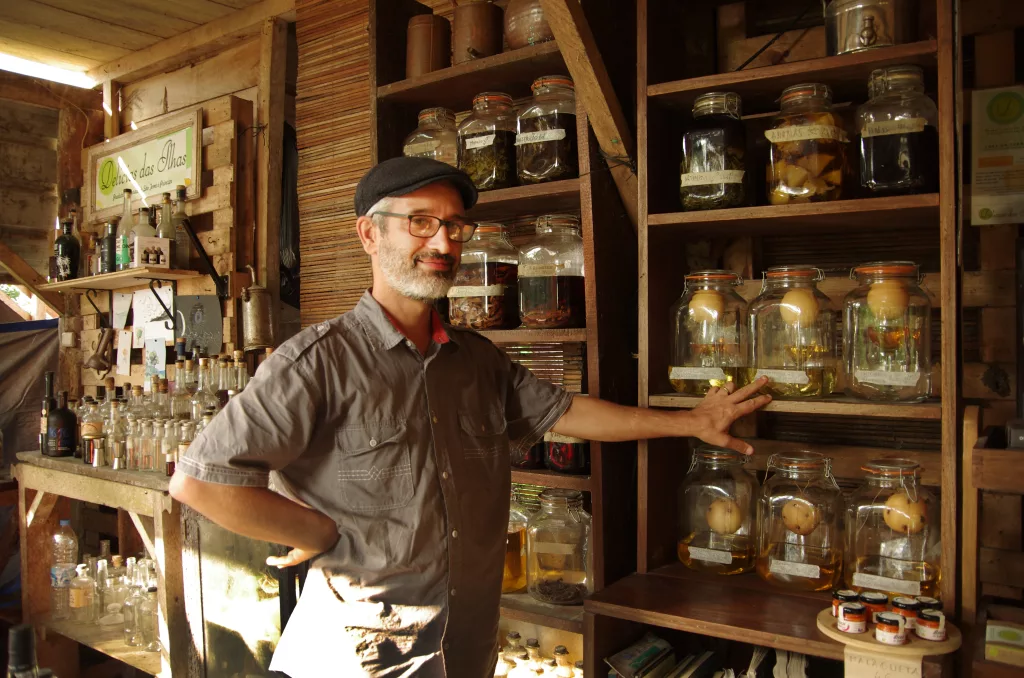 «Sono arrivato qui nel 2004, ancora studente, per un progetto di volontariato internazionale. Dopo aver lavorato una quindicina d’anni nel campo della conservazione per varie ong di protezione ambientale, nel 2020, assieme a mia moglie Delícia, originaria dell’isola, ho deciso di avviare una piccola impresa agricola per promuovere la coltivazione biologica di vaniglia, spezie e frutti tropicali». Oggi l’azienda a conduzione familiare di Bastien produce confetture, aromi per cucina, chips di frutta secca, infusi e olio di cocco lavorato a freddo, tutto senza additivi e conservanti. Non mancano saponi artigianali a base di aloe vera, avocado, cacao e curcuma. Particolarmente ricca è la selezione di liquori realizzati con aromi macerati in acquavite di canna da zucchero: perfetti per cocktail e macedonie. E poi c’è la piccantissima salsa di peperoncino tritato “Boca do Inferno”, un’esplosione di sapore riservata ai palati più audaci.