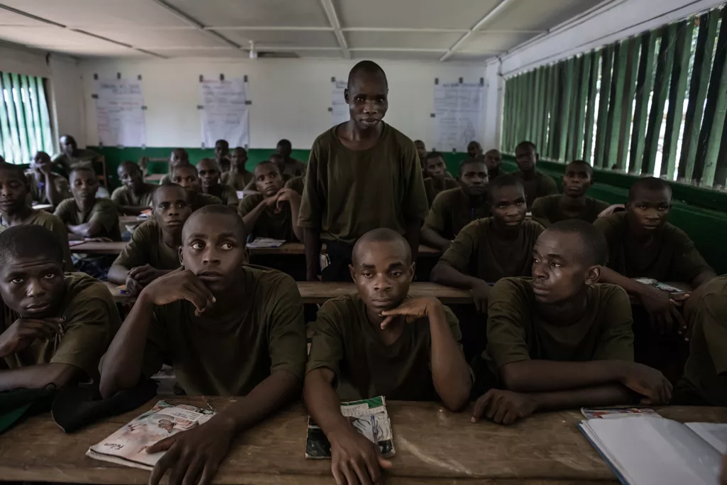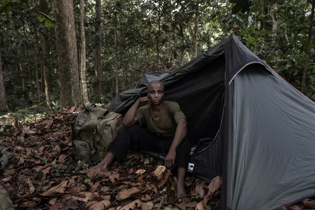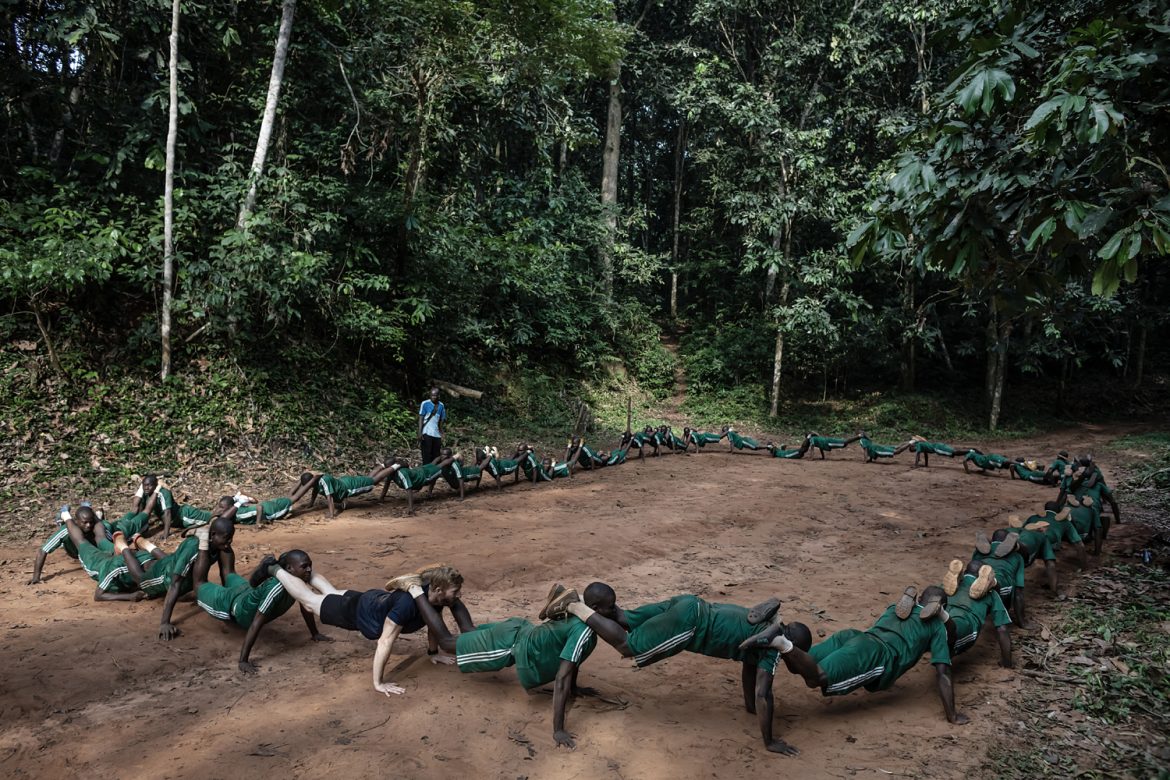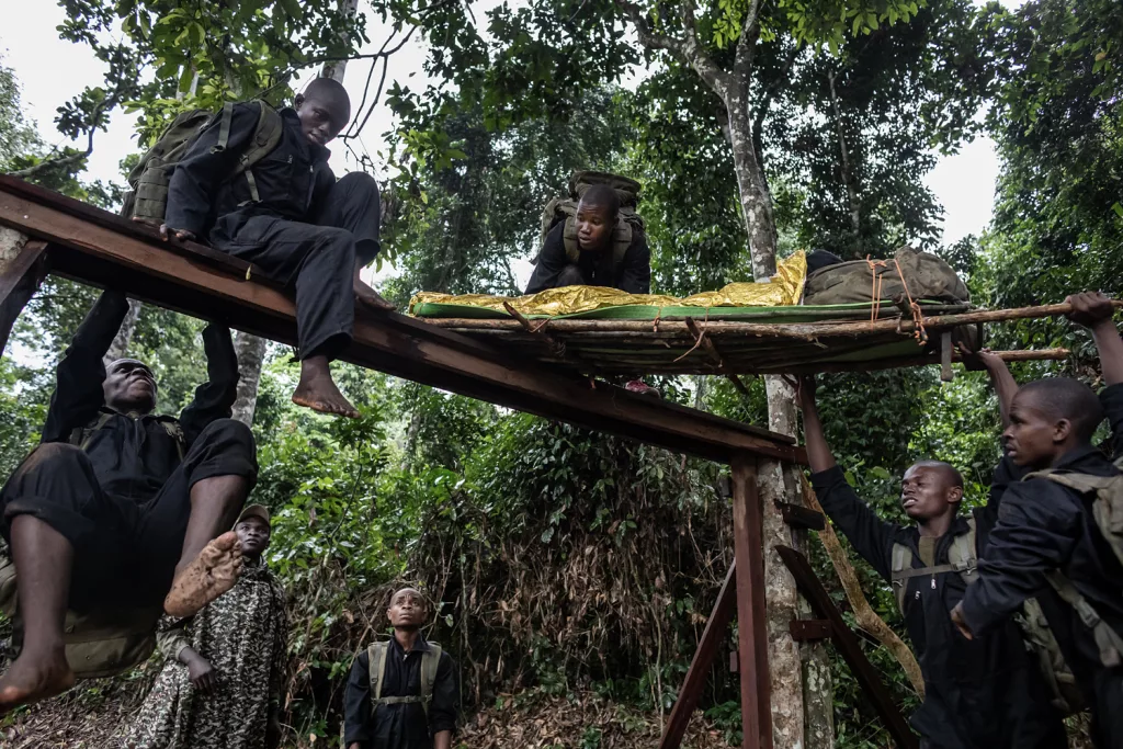 Il programma di formazione dura tre mesi e alterna campo e aula. Oltre alle prove fisiche, gli allievi studiano diritto ambientale, etica professionale, topografia, uso del Gps e gestione del territorio. Si allenano anche a interagire con le comunità locali, imparando a essere non solo guardie armate ma anche educatori, ambasciatori, mediatori culturali. Un approccio multidisciplinare pensato per affrontare le sfide ambientali e sociali che ogni giorno si presentano in uno dei territori più complessi del continente. Le esercitazioni sono serrate. I pattugliamenti simulati attraverso una fitta vegetazione, sotto una pioggia improvvisa o tra i rami gocciolanti della nebbia mattutina, mettono alla prova nervi e muscoli. Le reclute corrono con l’equipaggiamento completo, attraversano radure fangose, superano ostacoli naturali, apprendono a leggere le tracce e a muoversi silenziosamente. La cooperazione è centrale: ogni esercizio è un banco di prova per la fiducia e la coordinazione. L’autodisciplina è il fondamento. Ogni movimento, ogni comando, ogni gesto – da ripetizione meccanica – si trasforma in riflesso istintivo, automatico, indispensabile in situazioni di pericolo reale.