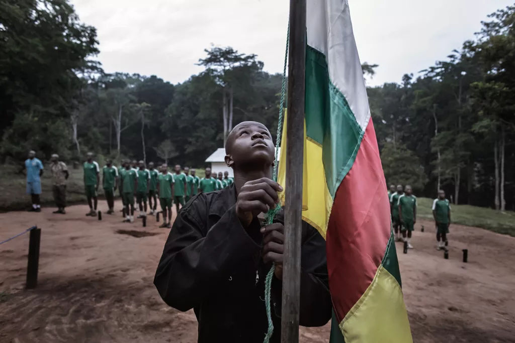 L’aria è già pesante, densa di umidità, quando il sole si affaccia sopra le chiome degli alberi secolari: la vegetazione luccica di rugiada e i richiami degli uccelli tropicali si confondono col fruscio del fogliame. Nel cuore della Riserva speciale di Dzanga-Sangha, nell’estremo sud-ovest del Centrafrica, 42 aspiranti eco-ranger si preparano a una nuova giornata di formazione. In pochi minuti sistemano le brande, indossano l’uniforme, riempiono gli zaini, fanno colazione e si allineano sullo spiazzo di terra rossa del Centro di formazione di Kongana. Ogni mattina comincia con l’alzabandiera della Repubblica Centrafricana: un momento di disciplina, rigore e silenziosa solennità. Poi, l’addestramento.