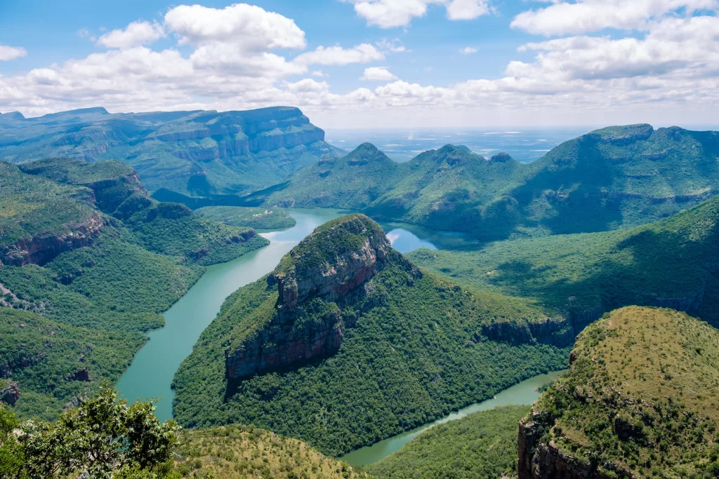 Un itinerario in Sudafrica difficilmente prescinde dalla Panorama Route, nella regione del Mpumalanga. Qui il paesaggio si apre in scenari spettacolari: il Blyde River Canyon — tra i più grandi al mondo —, i Three Rondavels e la God’s Window offrono punti di osservazione tra i più suggestivi del continente.