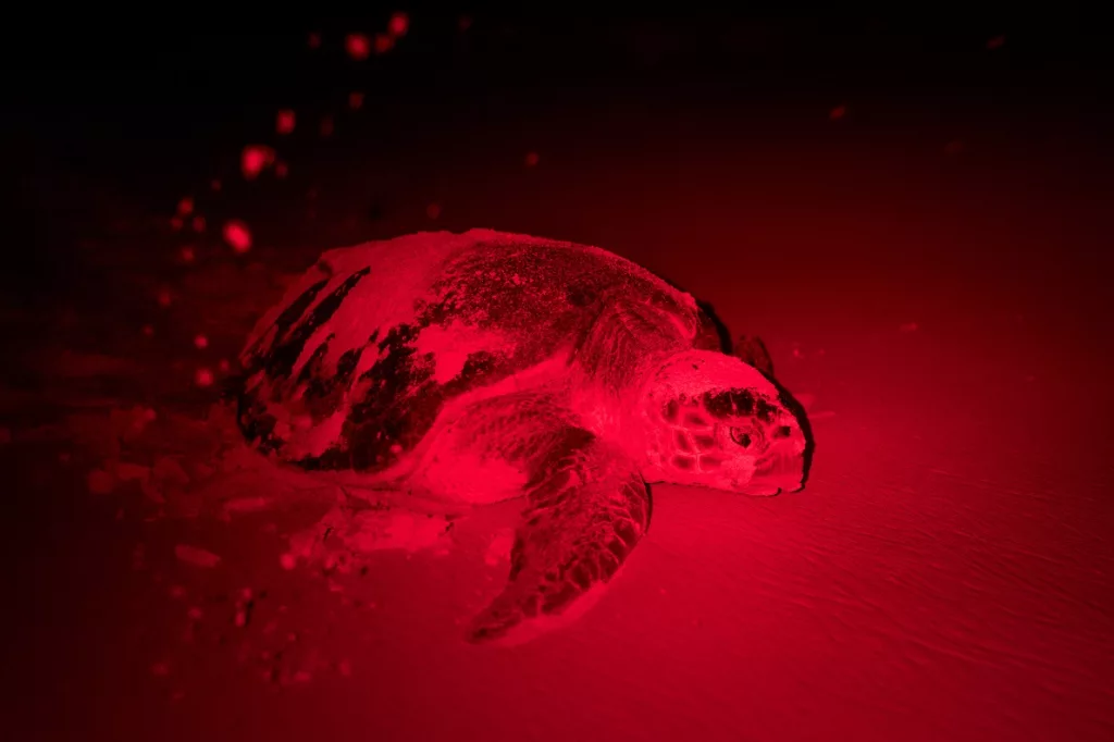I ranger e i volontari internazionali della Fundação Tartaruga arrivano sulle spiagge quando il sole comincia a calare, nel momento in cui la notte avvolge l’isola e le tartarughe cominciano ad affiorare dal mare per deporre le uova. La Fundação è una delle principali ong attive su Boa Vista, fondata per proteggere le tartarughe marine che raggiungono queste coste per nidificare. Ogni notte, da giugno a ottobre, le squadre della Fondazione, composte da biologi marini e ranger locali, perlustrano decine di chilometri di spiagge in cerca delle femmine di tartaruga Caretta caretta qui giunte per deporre le uova.