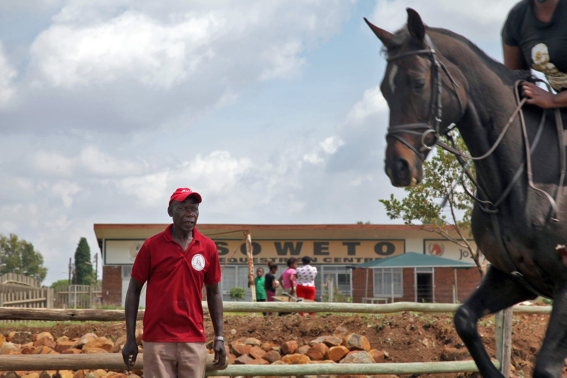 Incontriamo Enos Mosotho Mafokate nel Soweto Equestrian Centre che ha fondato nel 2007. «Qui insegno a cavalcare a bambini e ragazzi provenienti dai quartieri più difficili della township», dice cercando di sovrastare, con la propria voce, il mix di suoni che ogni giorno animano il maneggio: le grida divertite dei più piccoli, le indicazioni decise degli istruttori e il rumore degli zoccoli che colpiscono il terreno. «La passione per l’ippica, se coltivata, può portare molto lontano», aggiunge convinto mentre ci mostra un piatto di ceramica su cui è inciso un suo ritratto con le date più significative della sua vita. Enos regge il soprammobile con estrema cura, come se quell’oggetto-reliquia custodisse i segreti della sua esistenza. «Al 1980 ci sono arrivato dopo tanti sacrifici e non poca sofferenza», ricorda Enos, sfiorando la data incisa sul piatto.