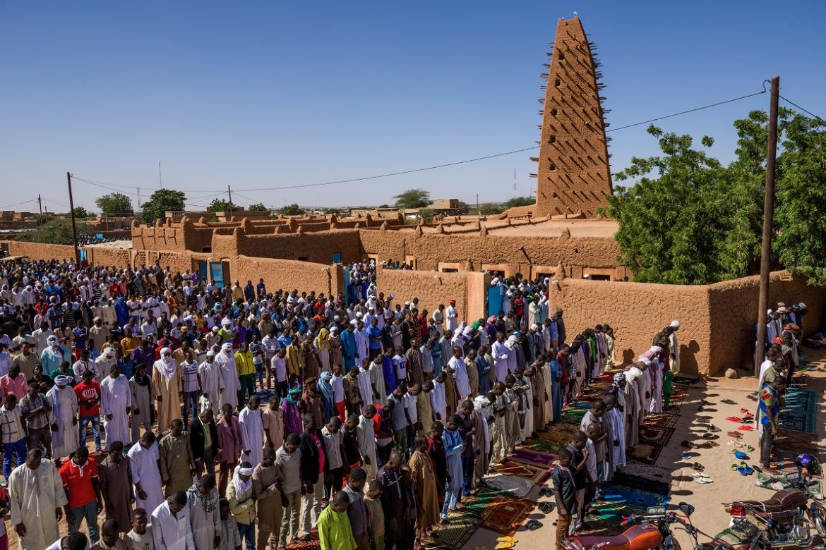 Ad Agadez, nel giorno della grande preghiera, il venerdì, i fedeli si raccolgono all’esterno della moschea di fango del XV secolo. – Foto di Pascal Maitre Panos
