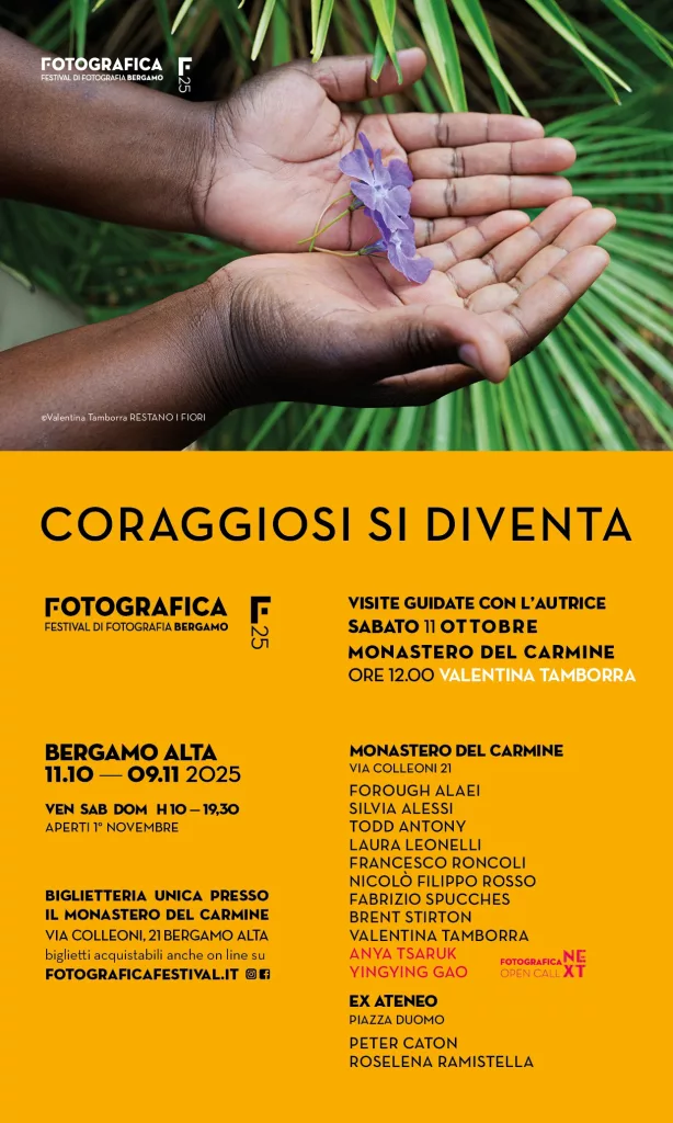 “È con gioia che presento a Bergamo ‘Restano i fiori’, un progetto multimediale che celebra la resilienza della vita anche nei momenti più bui e che vuole essere un tributo alla memoria e alla speranza, un invito a ricostruire e a trovare serenità anche quando tutto sembra perduto. ‘Restano i fiori’ non è solo una mostra: è un invito a guardare, ascoltare e comprendere. La videoinstallazione, curata e realizzata con Diego Ronzio, inoltre, valorizza ulteriormente gli elementi di bellezza e forza che continuano a esistere, nonostante tutto” dichiara la fotografa Valentina Tamborra che, sabato 11 ottobre alle 12:00, sarà disponibile per una visita guidata dell’esposizione.