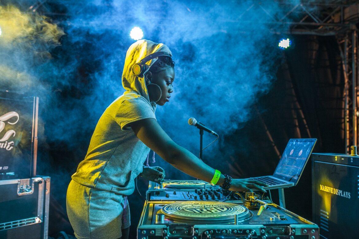 Dj Nana, la disc jockey più amata e richiesta della Nigeria, alla consolle durante l’annuale concerto “Jimmy jump off”, ospitato dalla Get Arena a Oniru-Lekki, un quartiere esclusivo di Lagos. – Foto di Andrew Esiebo