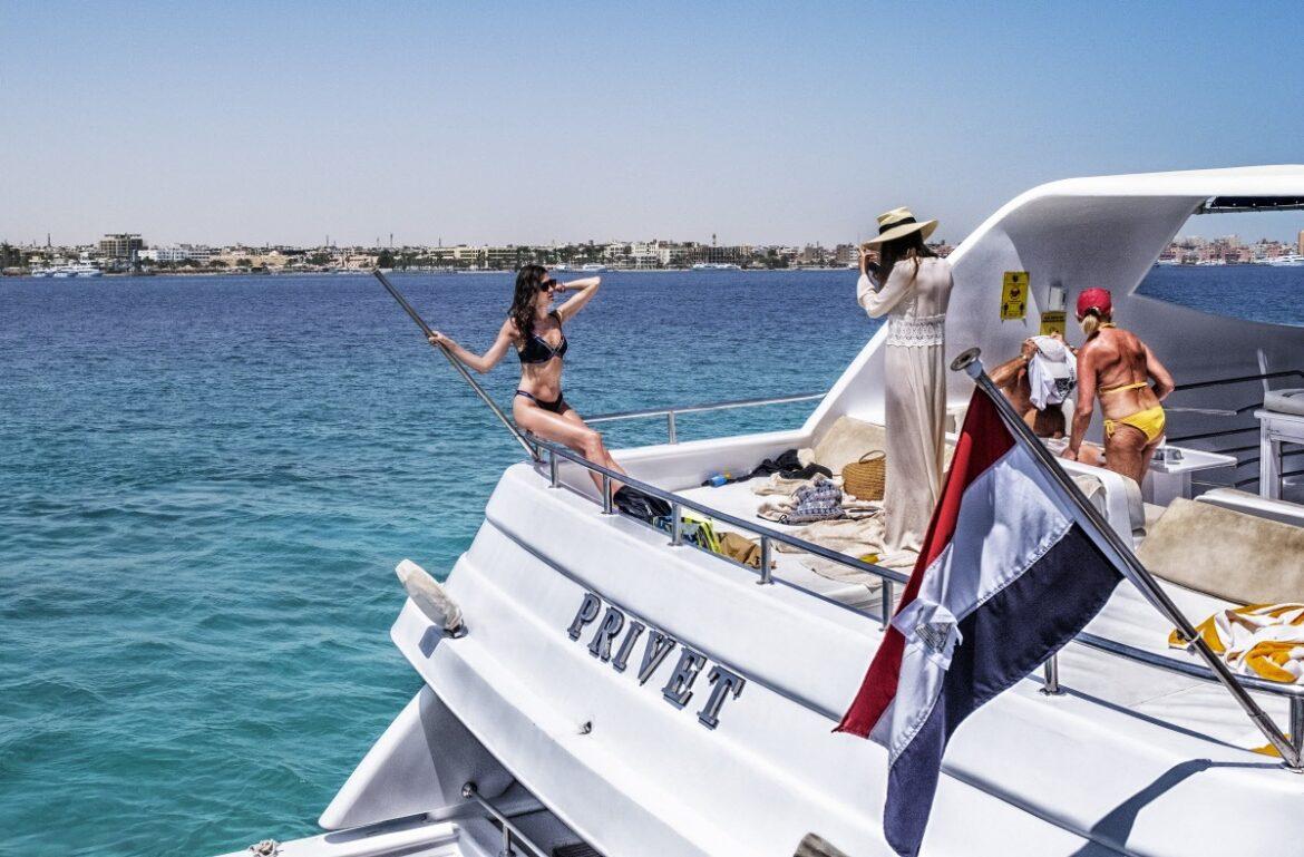Un milione di turisti russi sbarca ogni anno sulle spiagge di Hurghada e Sharm el-Sheikh. Voli charter e villaggi turistici sono sempre più affollati. Complice la chiusura dell’Occidente a Mosca, i russi si riversano nelle località balneari egiziane. Dove passano le loro vacanze in una bolla dorata assieme ai “nemici” ucraini. – Foto di Tim Dirven / Panos Pictures