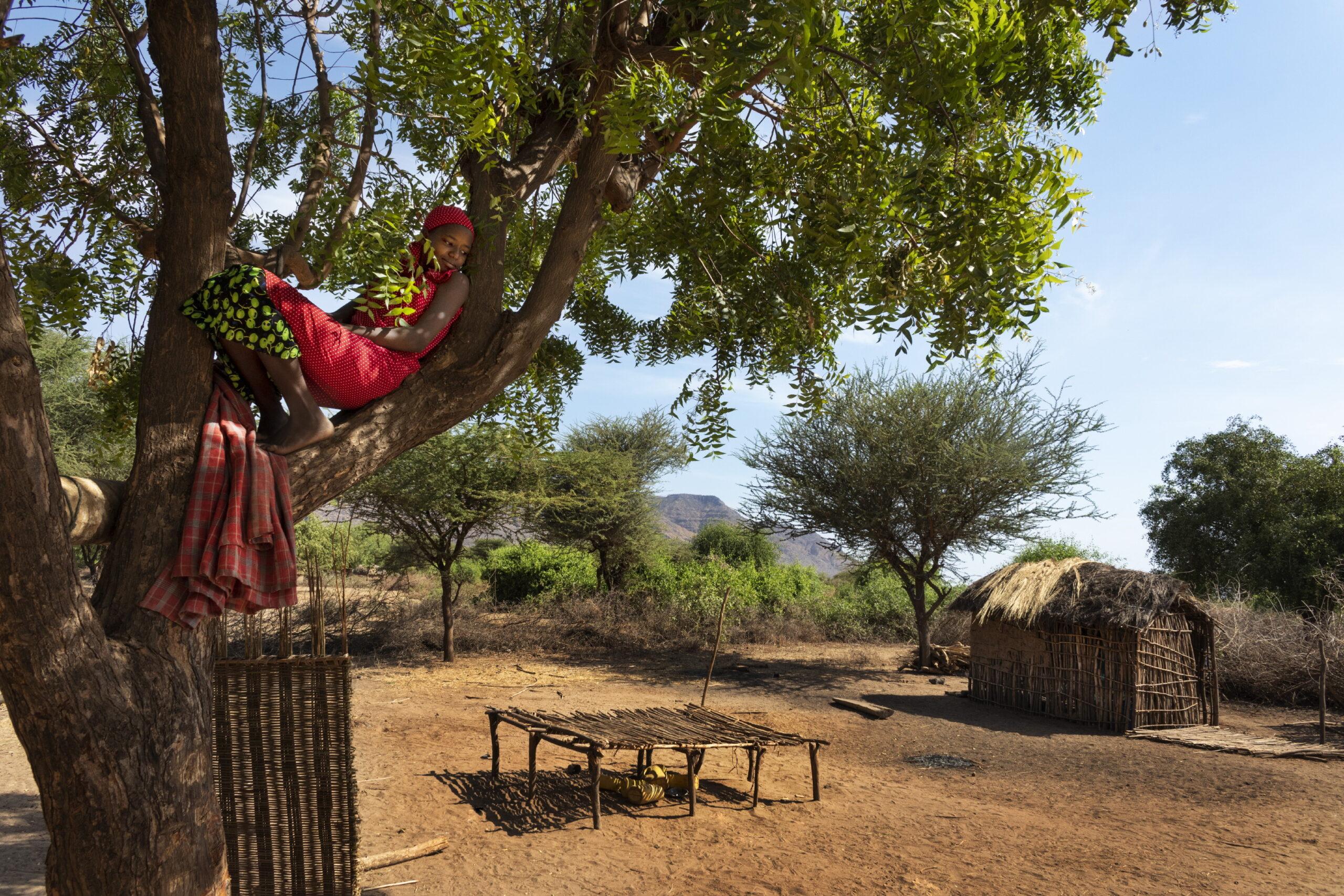Villaggio di Arkatani, distretto di Ngorongoro. Zeinah, 17 anni, riposa all’ombra nei pressi della sua abitazione. – Foto di Luca Catalano Gonzaga / Witness Image