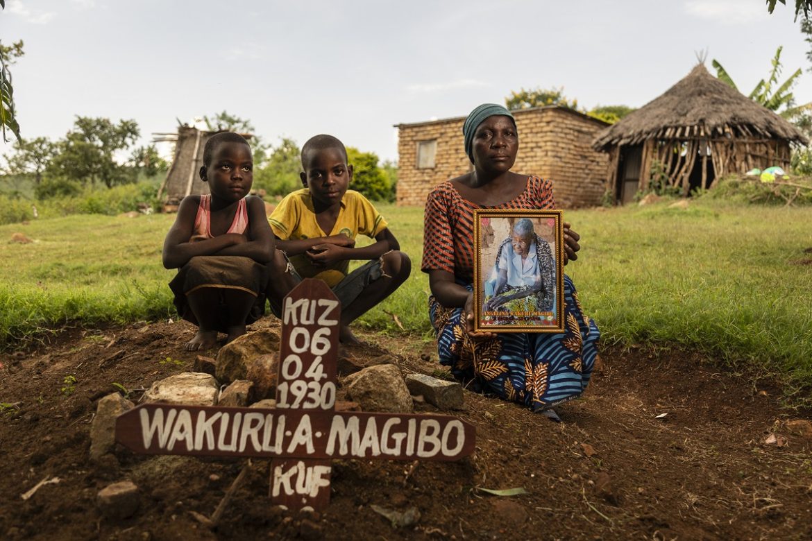 Tanzania: Joyce e i due figli sulla tomba di Angelina, l’anziana donna con la quale era sposata. – Foto di Stefano Stranges