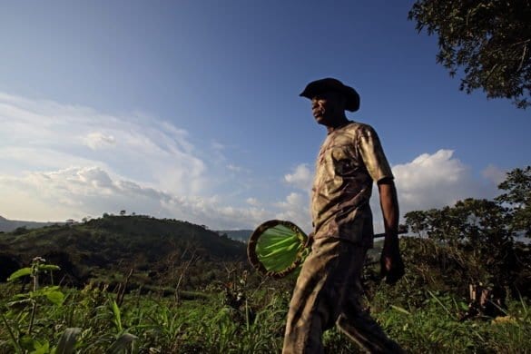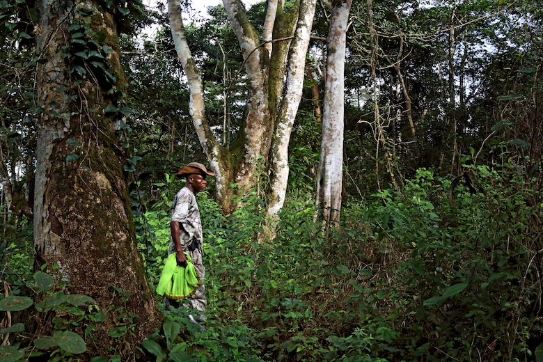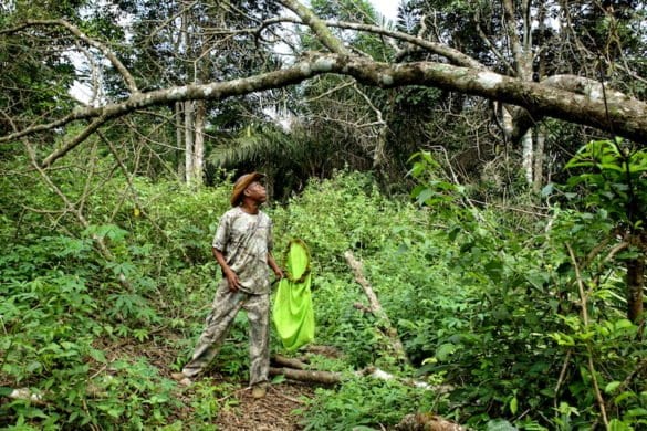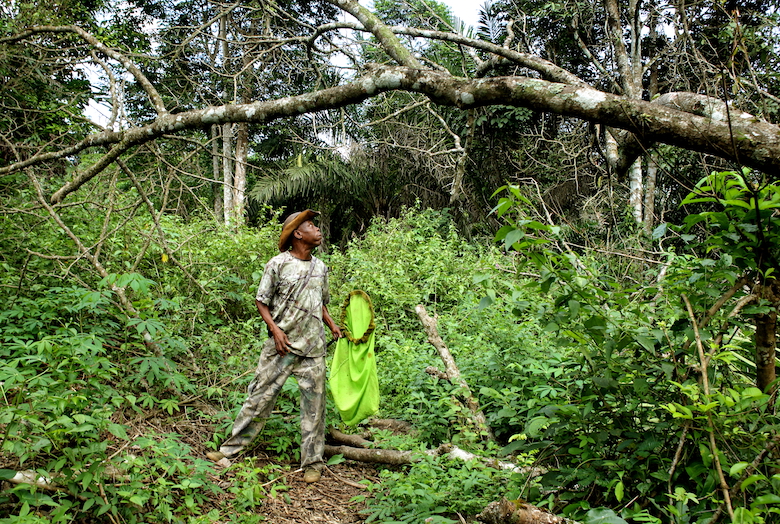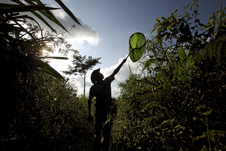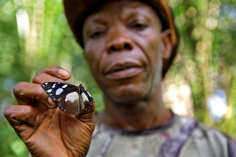 Sguardo sveglio, fisico asciutto e tonico, Prosper Nyanu si muove nella foresta con passo deciso. Attento ai rumori più lievi, sembra un felino a caccia di una preda. Indossa una tuta mimetica ma è armato solo di un innocuo retino: va a caccia di farfalle e falene.