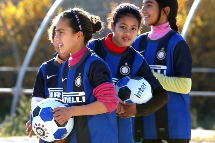 Giovani atlete di Inter Campus in Tunisia. Inter Campus dal 1997 restituisce il diritto al gioco ai bambini in difficoltà in sei nazioni africane. Dove i grandi club del calcio cercano i talenti, Inter Campus si interessa dei ragazzi e ragazze più vulnerabili.
