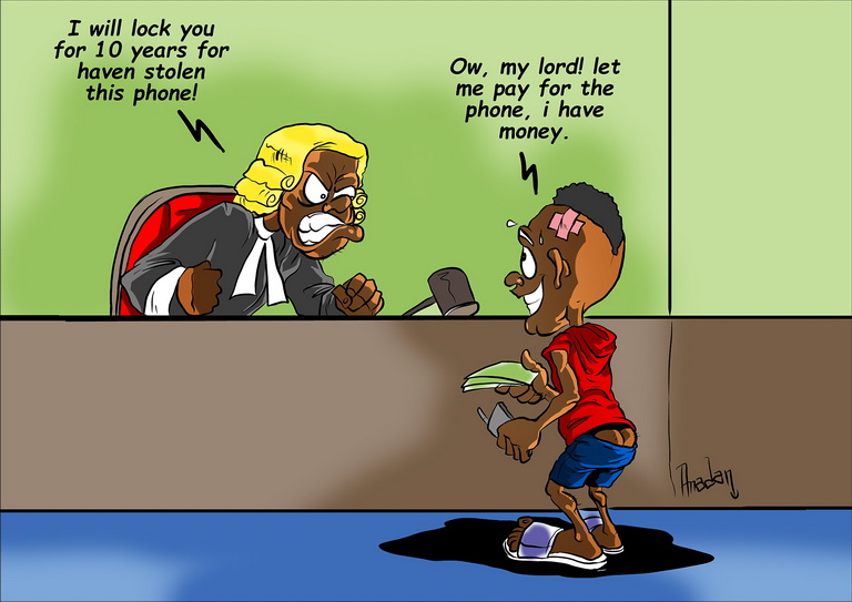 Il Centro africano della Caricatura è un’organizzazione indipendente di disegnatori e caricaturisti fondato nel 1991, con sede a Kinshasa, e ha collegamenti in tutte le province del Congo. Oggi collaborano con il Centro oltre 475 professionisti congolesi e africani. Si tratta di un centro riconosciuto a livello internazionale e il suo direttore è un raffinato equilibrista sulla sottile linea che divide le minacce dal rischio concreto della prigione, per i disegni pubblicati che superano il confine del “politicamente corretto”. Le minacce in realtà sono state continue, dai tempi del regime di Mobutu ad oggi (Joseph Kabila è restato al potere 18 anni). «La censura qui non ha mai smesso di esistere», afferma Mushabah. «La satira politica, quella che denuncia la corruzione nelle istituzioni, è condannata dai governanti e dai potenti uomini d’affari. Recentemente alcuni nostri disegnatori di Kisangani hanno subito rappresaglie per le loro caricature su politici locali. Molti giornalisti sono in prigione oppure sono costretti a partire. Disegnatori e giornalisti devono indossare la museruola dell’autocensura, se non vogliono correre rischi. Il Centro forma ogni anno una decina di vignettisti. Non è necessario saper leggere per comprendere un’ingiustizia. Anche per questo i disegnatori satirici sono fondamentali per formare la coscienza civile di una nazione».