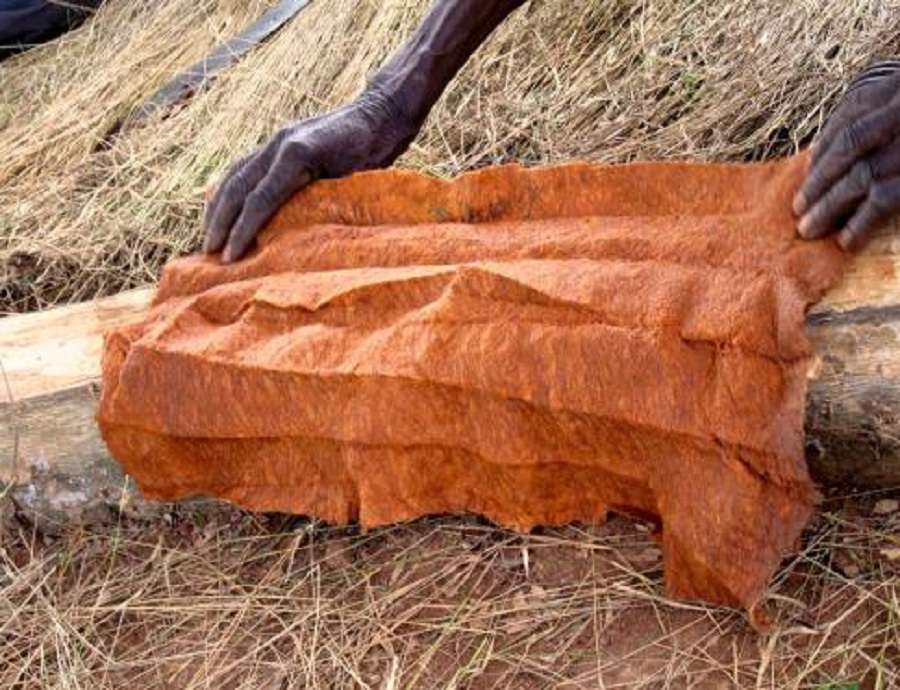 Secondo la lavorazione tradizionale, tramandata nel tempo dal popolo Baganda, per prima cosa viene raccolta la corteccia durante la stagione umida, procedendo con la scorticatura della parte più esterna della corteccia dei singoli alberi. Questa verrà poi sottoposta al processo di battitura fatto a mano per creare un tessuto uniforme. Si tratta di un processo meticoloso e affascinante, dove ogni dettaglio è responsabile del risultato finale. La corteccia non deve asciugarsi troppo velocemente e per questo gli artigiani lavorano di solito sotto una tettoia aperta.