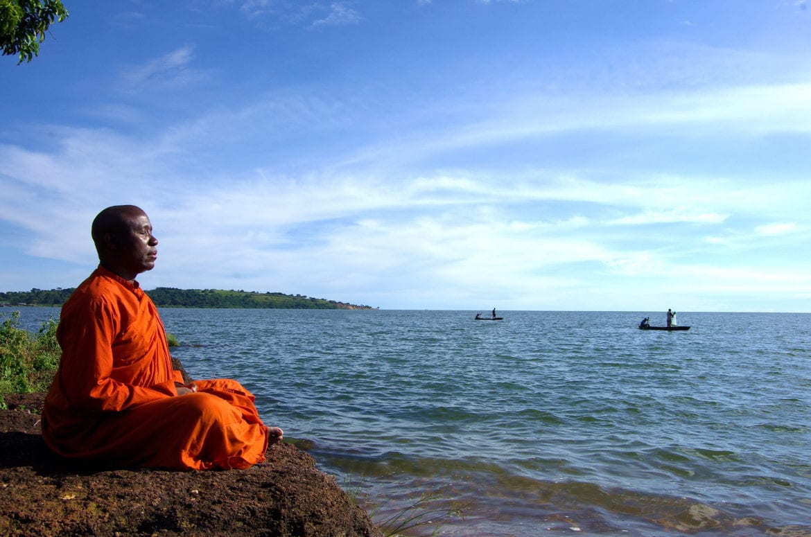 Bhante Buddharakkhita in meditazione sulle rive del Lago Vittoria. – Foto di Marco Trovato